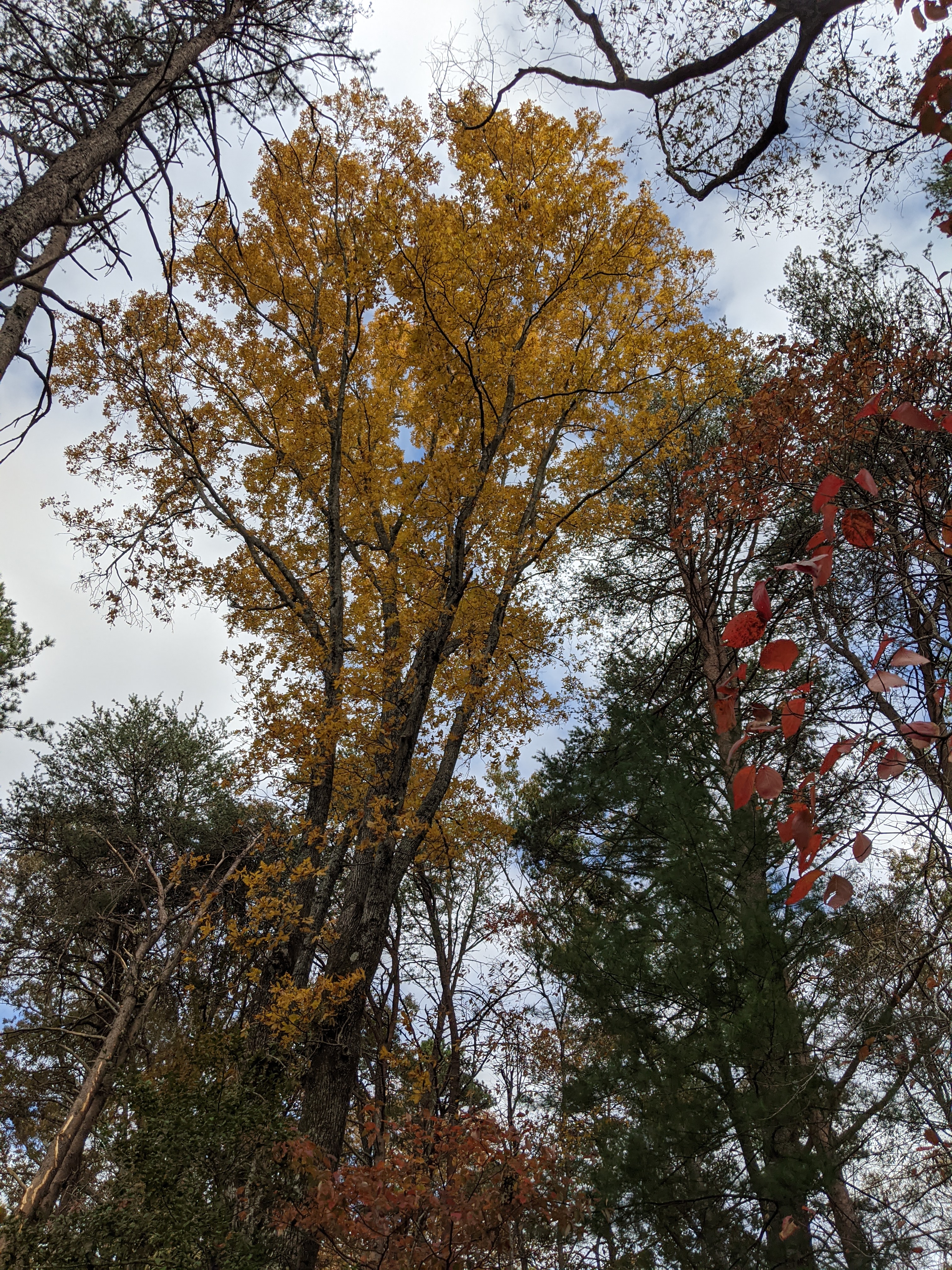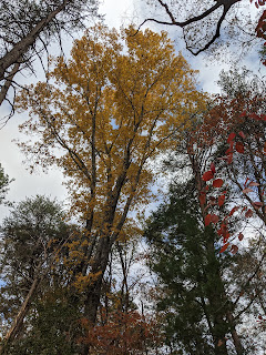 Took a walk with D in the neighborhood over to the trails at the equestrian park in the morning. We enjoyed some of the fall colors and seeing the aftermath of storm Zeta from the previous weeks.